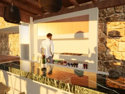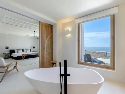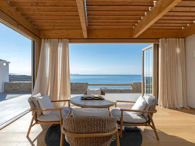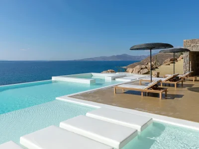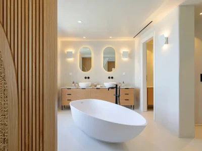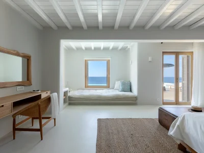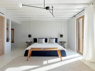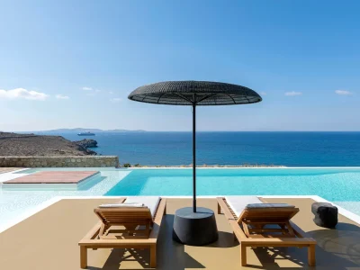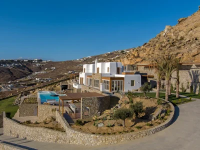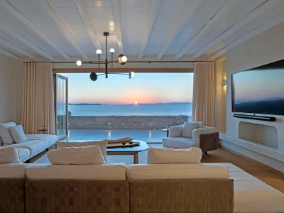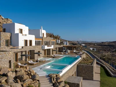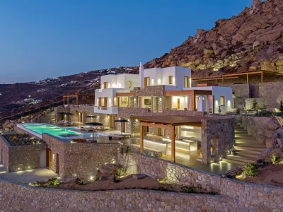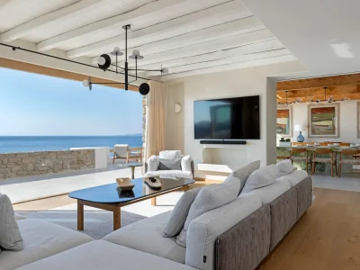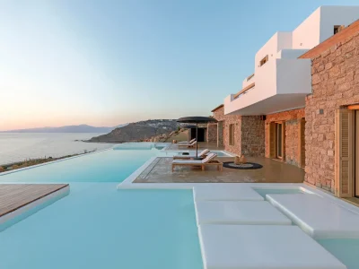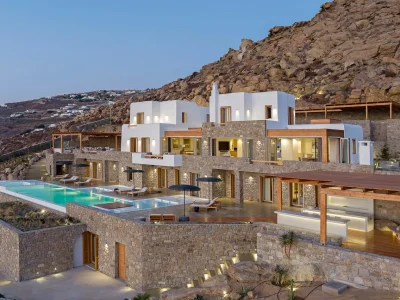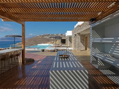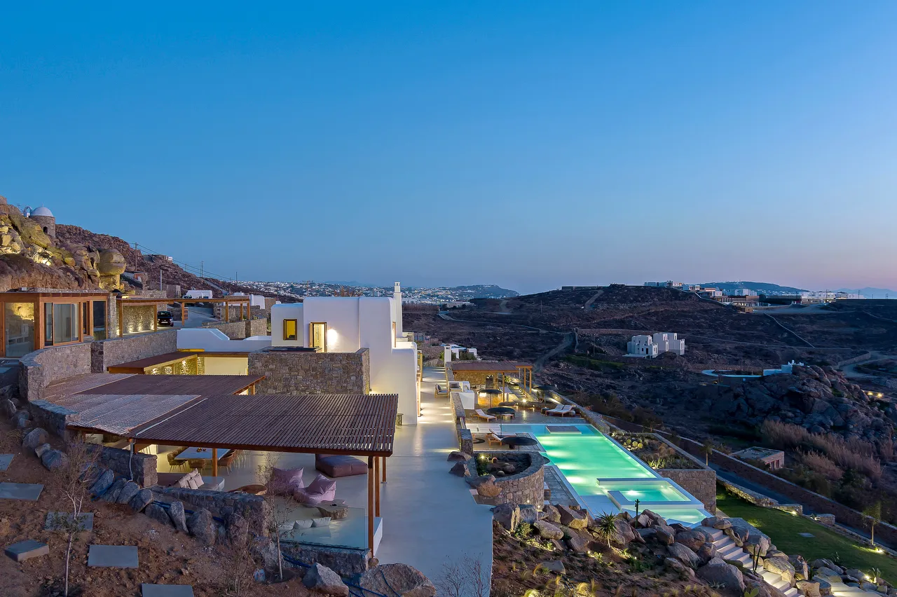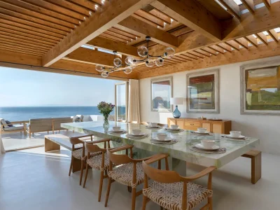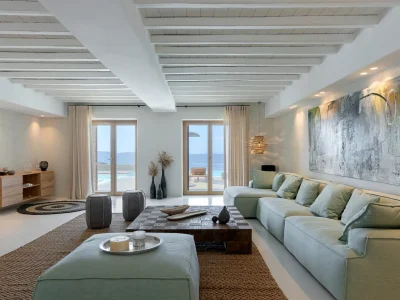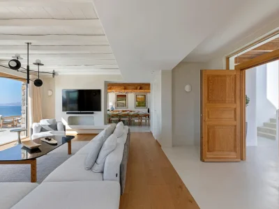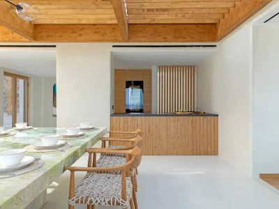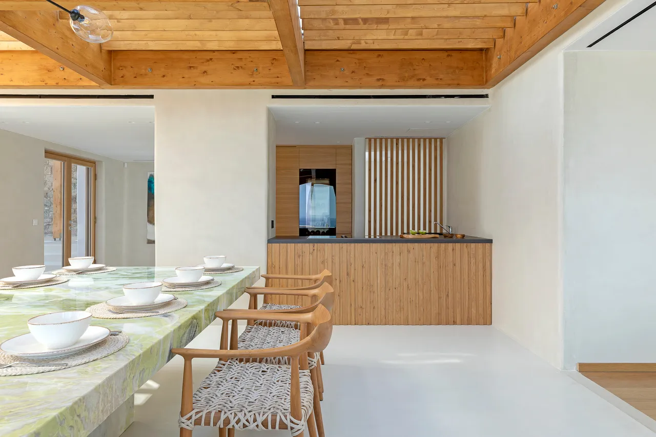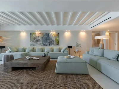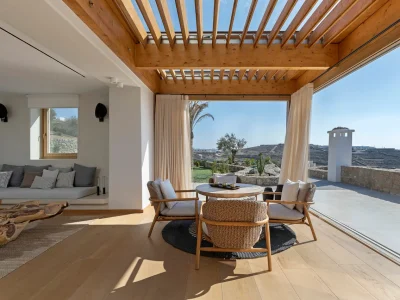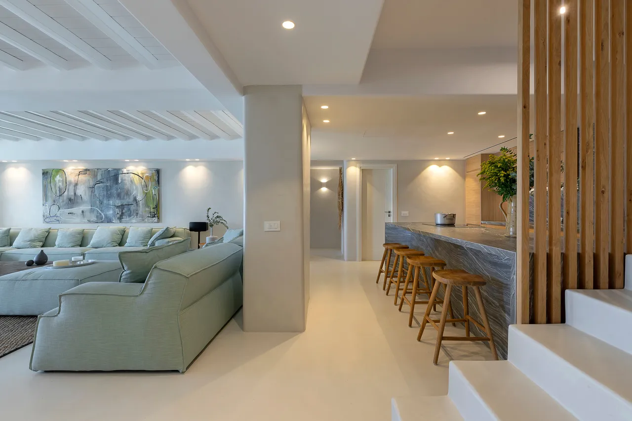 Perched above a pristine natural bay, Casa Spilia is an exceptional 850 m² architectural retreat nestled within a 4,000 m² private plot, offering truly uninterrupted panoramic views of the coastline, blending effortless luxury with the island’s untamed beauty. Just a short drive from the island’s iconic nightlife, the villa provides a serene escape that doesn’t compromise on access to vibrant entertainment.